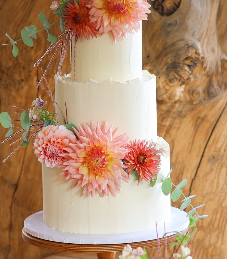 Each cake is a unique work of art, adorned with seasonal edible flowers that add natural beauty and elegance.